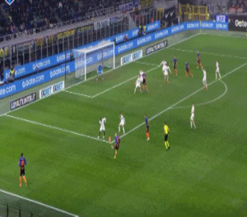 两分钟之后,迪马尔科送出妙传,劳塔罗跟进头球破门,国米扳平比分。上半场补时阶段,埃斯波西托破门帮助国米完成反超。