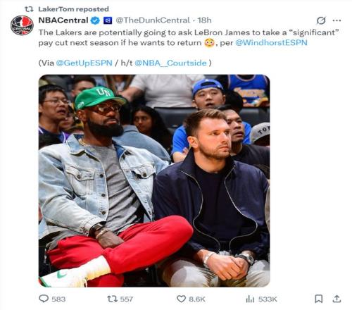 1月30日凌晨,ESPN记者布莱恩-文霍斯特透露,在今夏湖人会要求勒布朗-詹姆斯降薪,而且是大幅度的降薪,只要詹姆斯还想在湖人继续征战他就不得不接受这种程度的降薪。